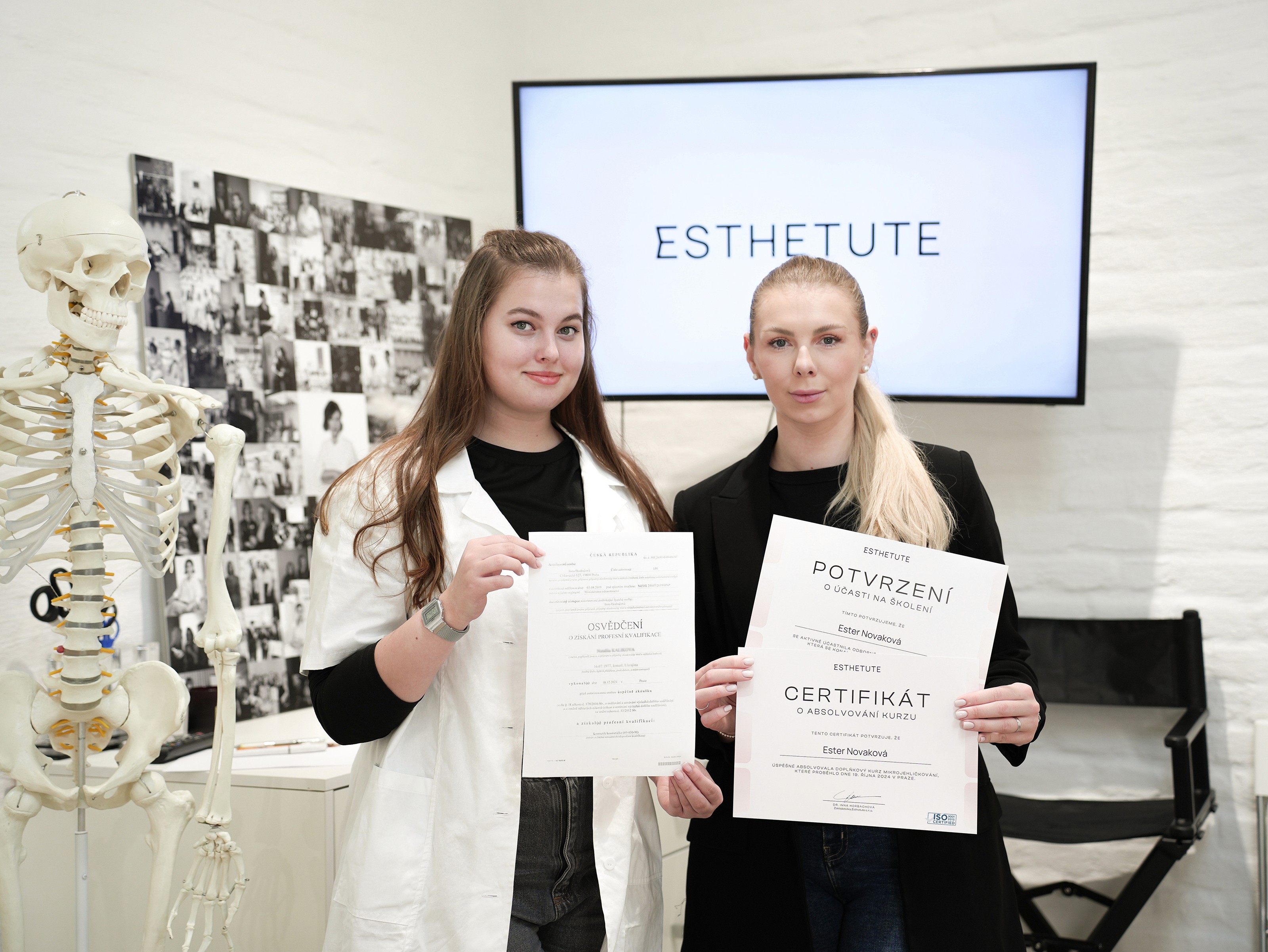 Certifikáty doplňkových kurzů Esthetute potvrzující rozšířené dovednosti a vaši odbornou kvalifikaci